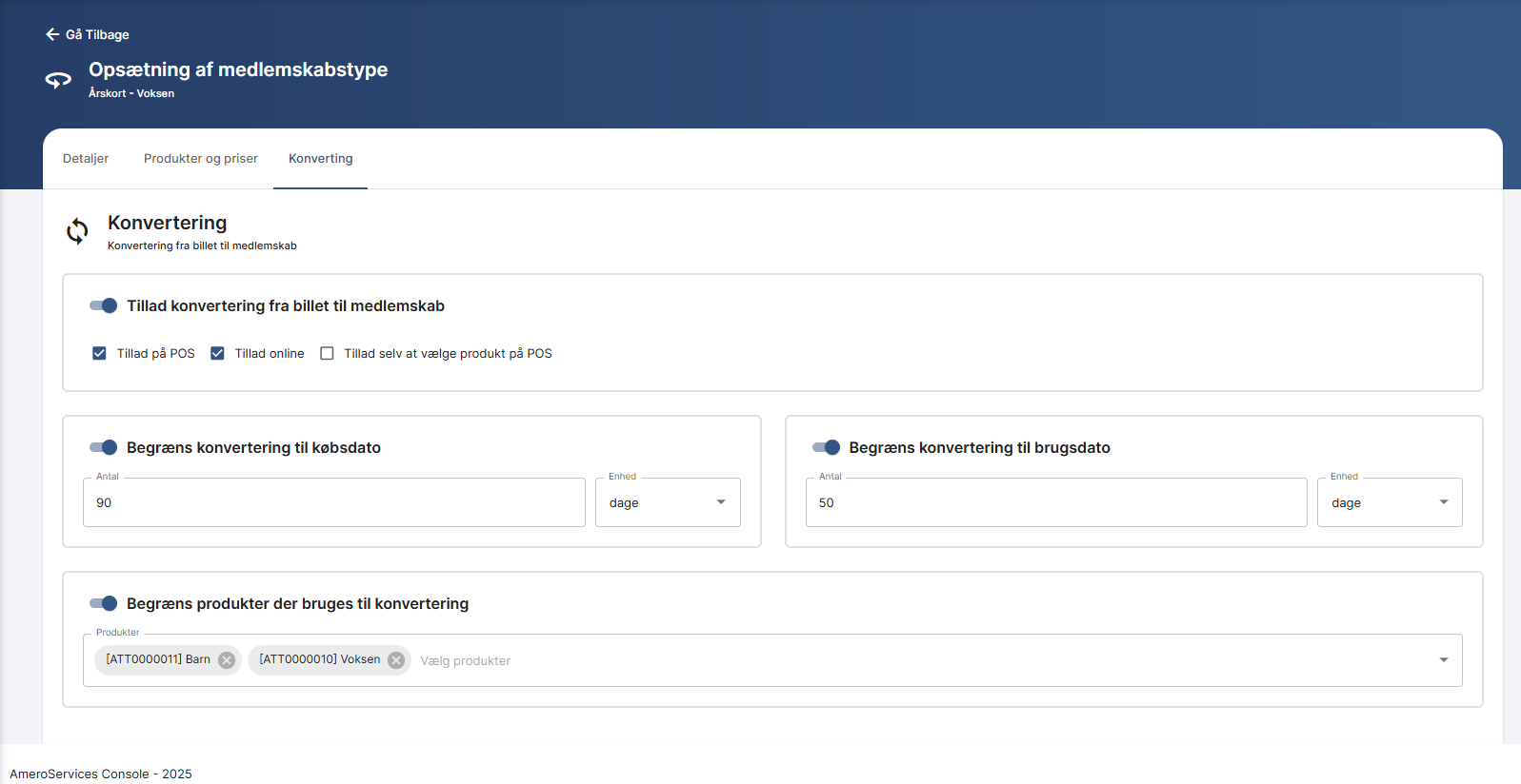 Begrænser hvilke billetprodukter der kan konverteres til medlemskab |