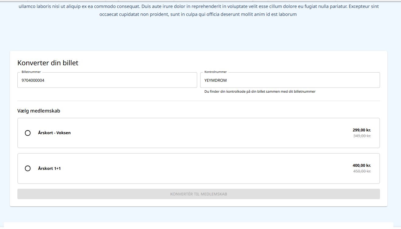 - Disse steps kan gentages for at konvertere flere billetter til medlemskaber i samme ordre