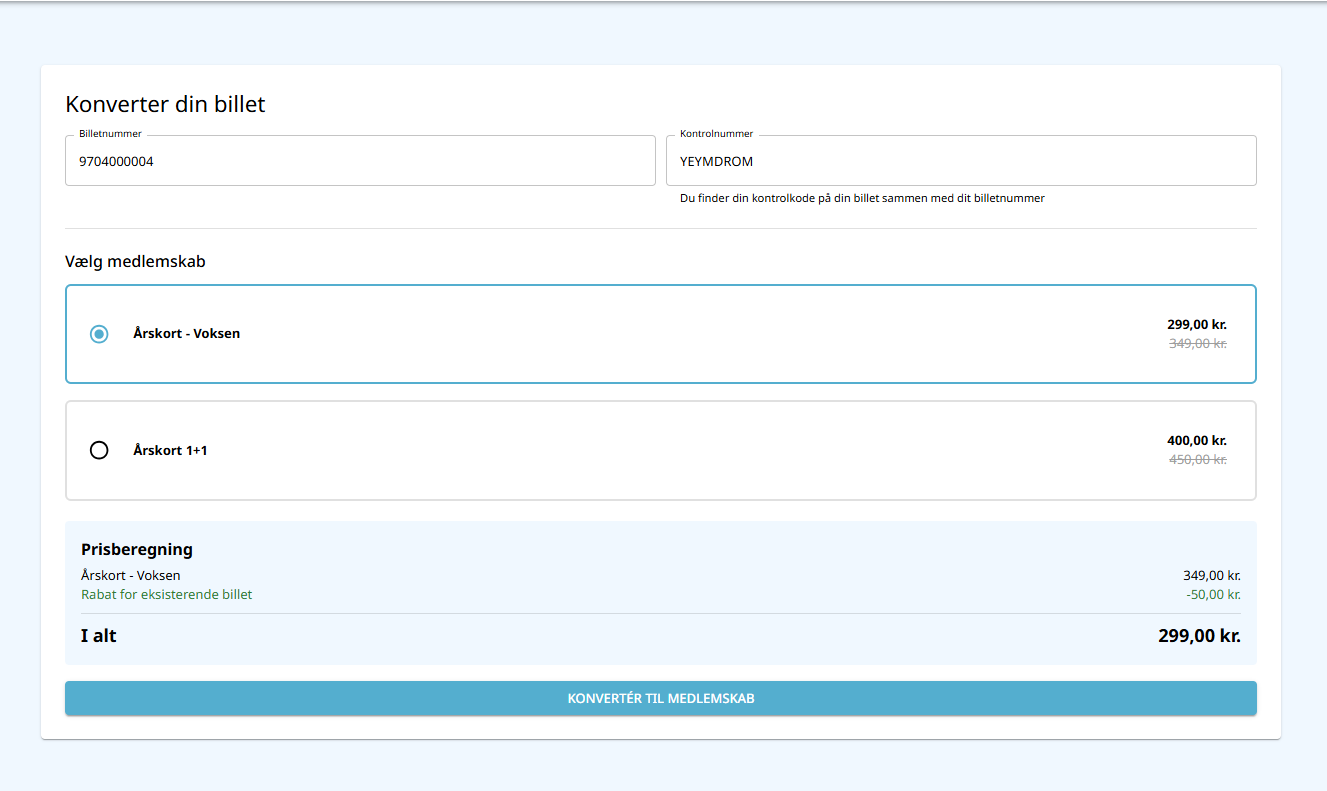 Konverter billet til medlemskab