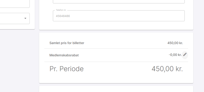 - Den reelle pris på billetten bliver nu fratrukket medlemskabets pris