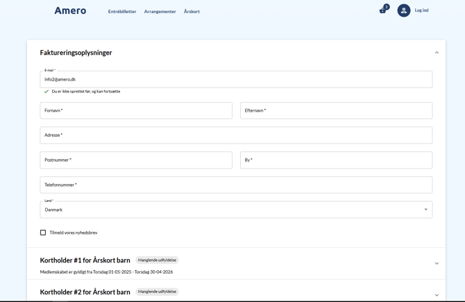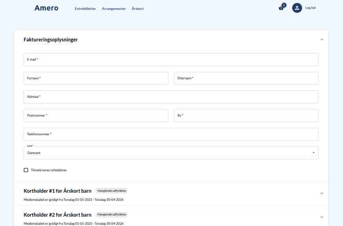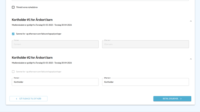 - For hvert medlemskab, skal der udfyldes for- og efternavn på kortholderen