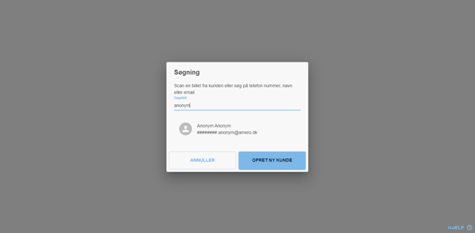 - Find kunden ved at søge på navn, billetnummer, email eller lignende i søgefeltet, eller opret en ny kunde ved at klikke på Opret ny kunde
