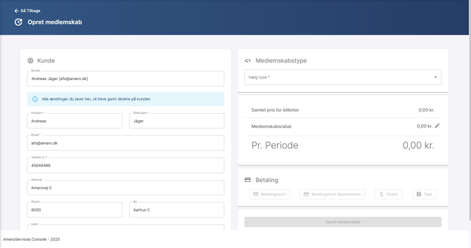 Brug følgende guide til at oprette et medlemskab igennem backenden: