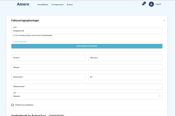- Hvis kunden vil have adgang til deres medlemskab online, skal de oprette en adgangskode, dette gøres ved blot at oprette en konto som normalt. Der vil de blive bedt om at bekræfte deres email, og i linket der tilsendes vil de kunne oprette en adgangskode.